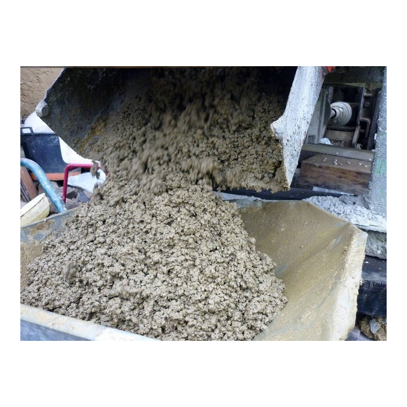 Le béton ARGILUS se prépare en bétonnière ou au godet malaxeur. Il faudra scrupuleusement respecter les quantités d’eau à ajouter