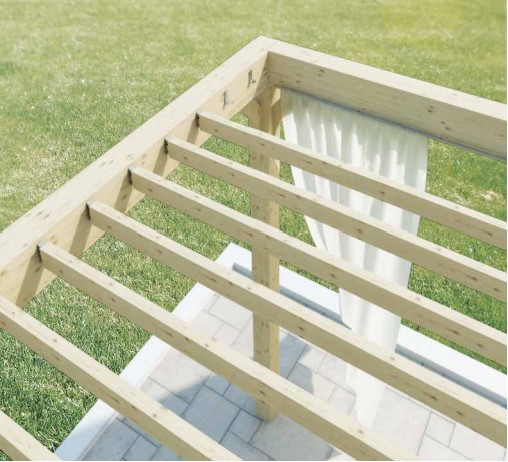 • Utilisable avec des poutres de section réduite pour structures, pergola et mobiliers. Excellente tolérance de montage, facilement démontable