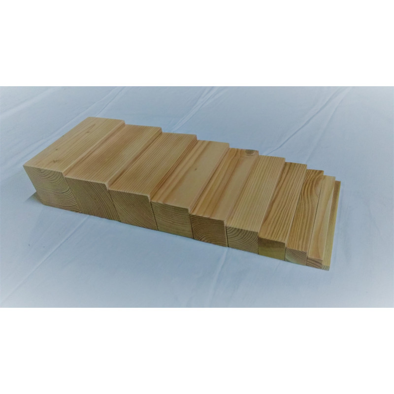Matériel emblématique de la méthode Montessori, elle consiste en 10 rectangles ( prisme ) de bois bruts et d’arêtes croissantes de 1 cm à 10 cm et de Longueur : 20 cm .