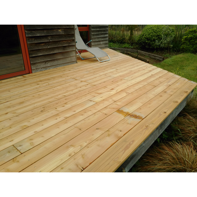 L’entretien du Mélèze est très facile. Soit vous le laissez griser, seul un nettoyage au karcher une fois par an (basse pression) sera utile, tout en sachant que vous pouvez retrouver à tout moment votre teinte d’origine grâce à un dégriseur . Sinon vous pouvez maintenir la teinte du Douglas avec un saturateur ou une huile écologique à passer deux fois par an .