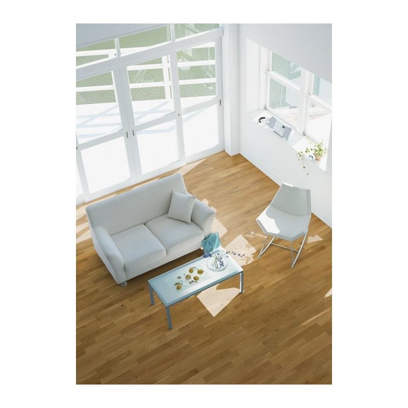Le sol à l’anglaise HOLZLOC3 frises crée dans chaque pièce une harmonie chaleureuse et attrayante grâce à son bois clair et tendance.Les bois clairs créent de l’espace et, avec leur présence douce, sont toujours subordonnés au concept d’ameublement.