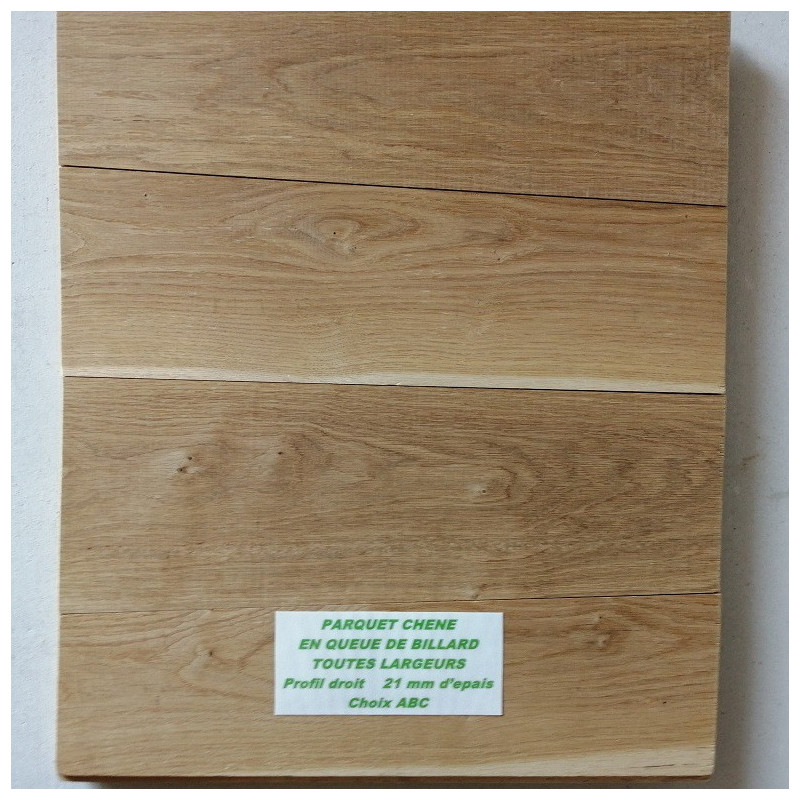 PARQUET MASSIF CHENE en QUEUE de BILLARD / CHOIX ABC en 21 mm d’épaisseur à bords droits ( à VISSER ou à CLOUER) VENDU au m²