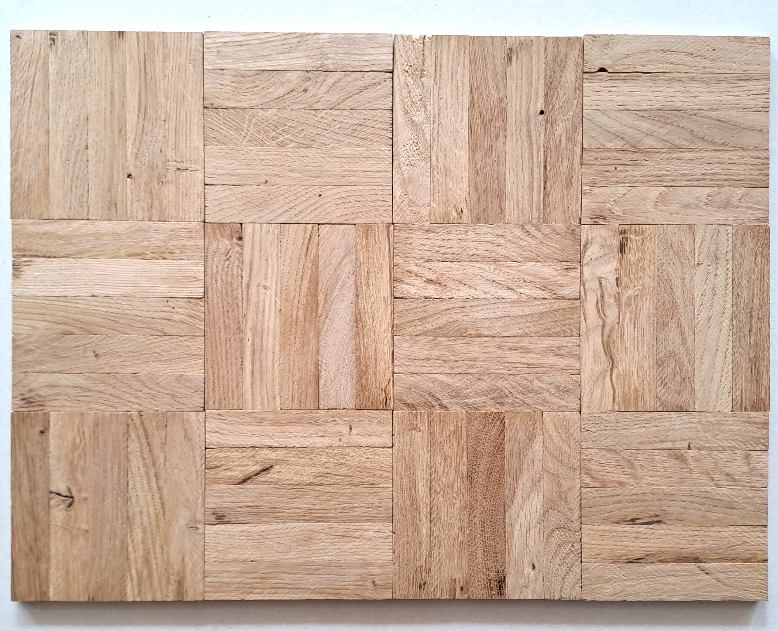 PARQUET MASSIF en CHENE à COLLER / MODELE : DAMIER Choix : RUSTIQUE / VENDU au M²