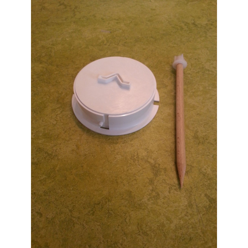 2/ Enfoncer le piquet en bois au sol à l’aide d’un maillet. Le détecteur doit être placé au niveau du sol pour ne pas gêner le passage de la tondeuse si nécessaire