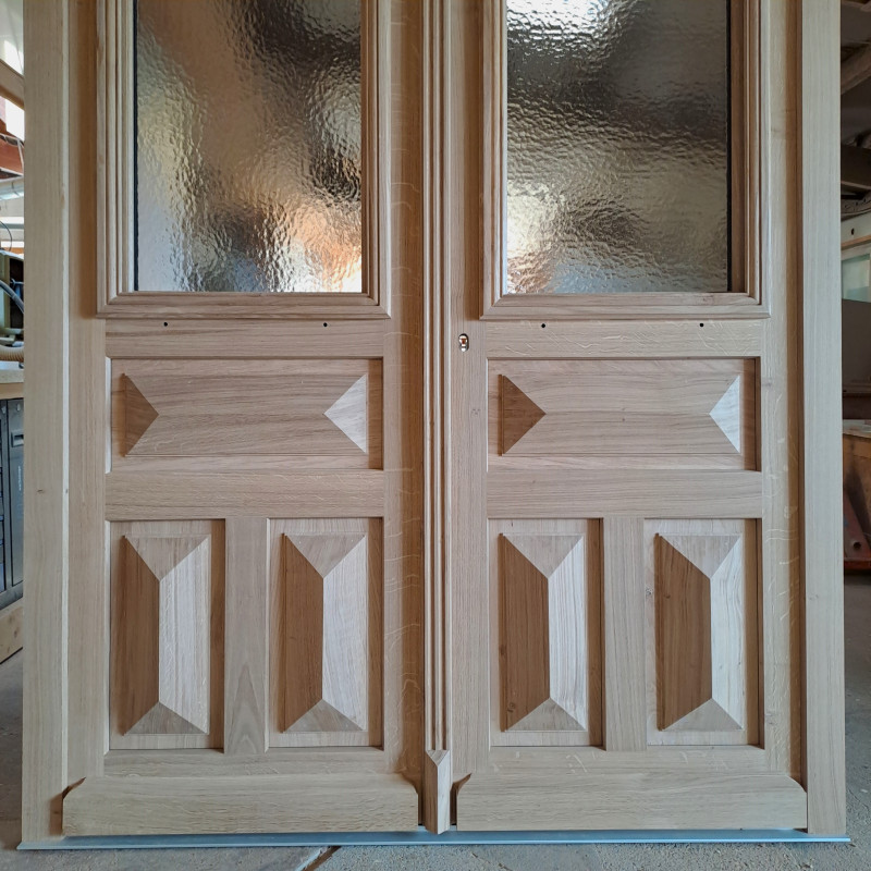 PORTE D’ENTREE AVEC IMPOSTE en CHENE MASSIF / 2 VANTAUX