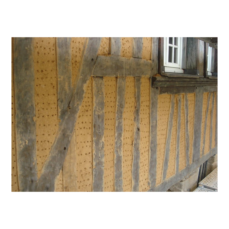 Le TORCHIS DE REMPLISSAGE est principalement destiné aux colombages et est composé d’argile, de longues fibres de paille d’orge – afin d’alléger et structurer le produit en forte épaisseur, et de différents sables. Il peut s’appliquer jusqu’à 15 cm en plusieurs couches (3 généralement) et est conditionné en BIG BAG d’ 1 tonne uniquement.